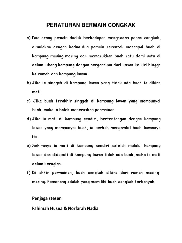 Peraturan Permainan Congkak Pdf