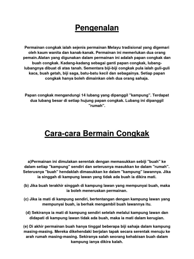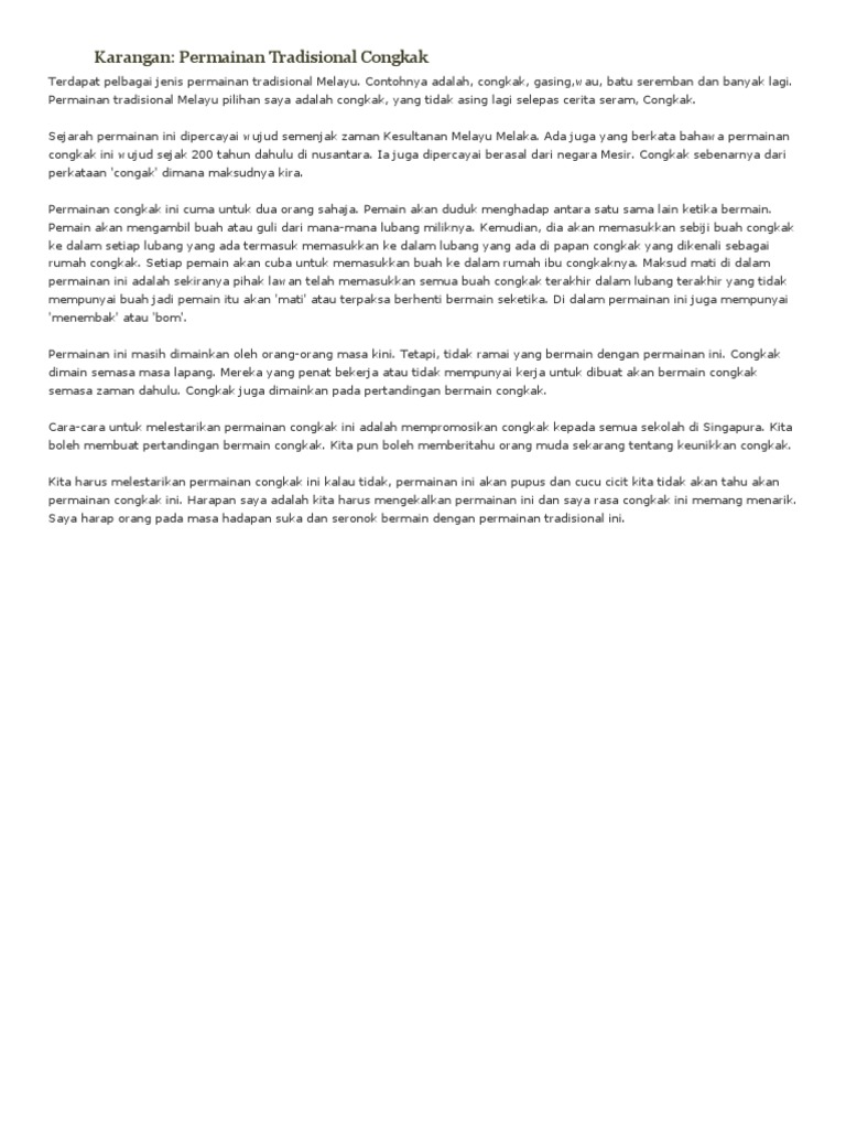 Congkak Karangan Permainan Tradisional Congkak Pdf
